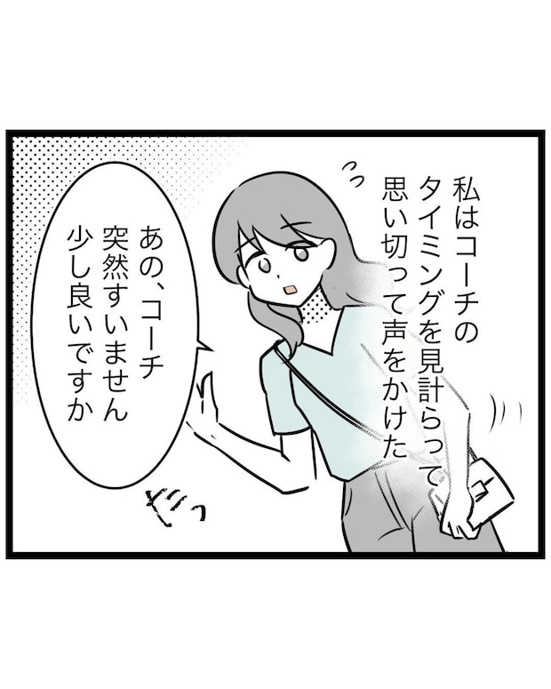 もっつんさんはついに立ち上がり、思い切ってコーチに話しかけました。