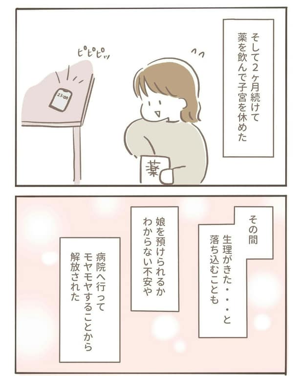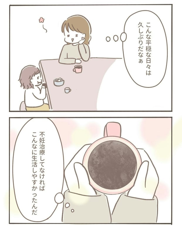 思わぬ形で、不妊治療を一時お休みすることになりました。ですが、今までの落ち込みや不安、モヤモヤから解放され、久しぶりに娘と向き合い、穏やかな日常を過ごします。今までノンストップで走り続けていたため、今回のお休みは心身とも回復につながりそうです。
