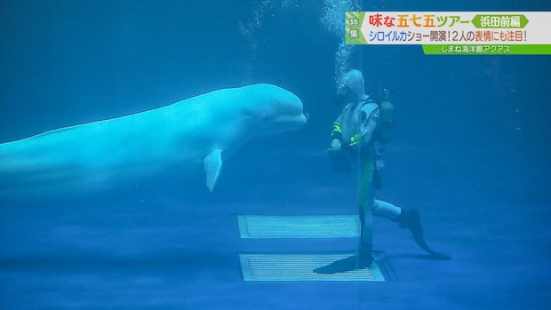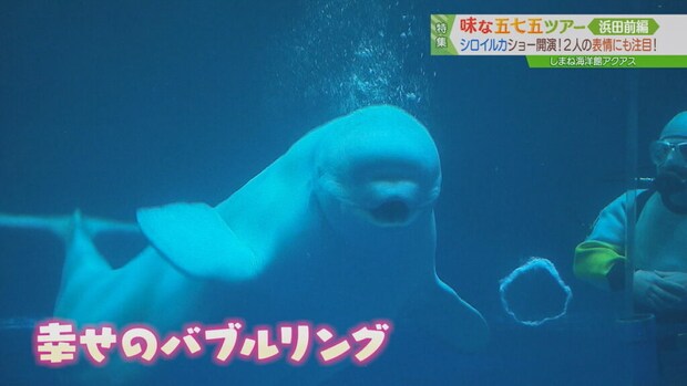 アクアスで大人気なのが、シロイルカのパフォーマンス!