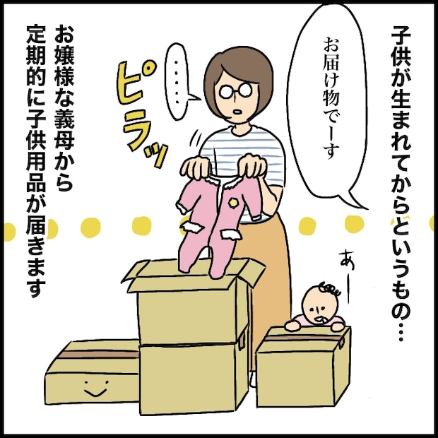 そんな義母は、庶民の感覚で話すと思いもよらぬ解釈をしてしまうことがあります。子どもが生まれてからというもの、お嬢様な義母から定期的に子ども用品が届きます。義母が贈ってくれるのは、義母がお気に入りの高級ブランド品ばかり。この日も段ボール4箱分の子ども用品が届きました。