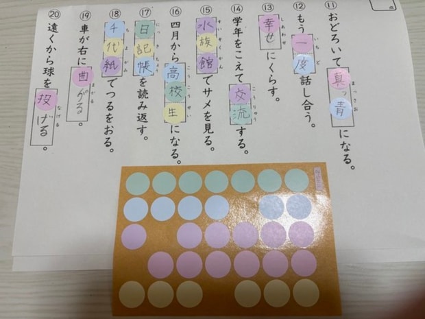 漢字プリントを丸シールを使って選択式に!