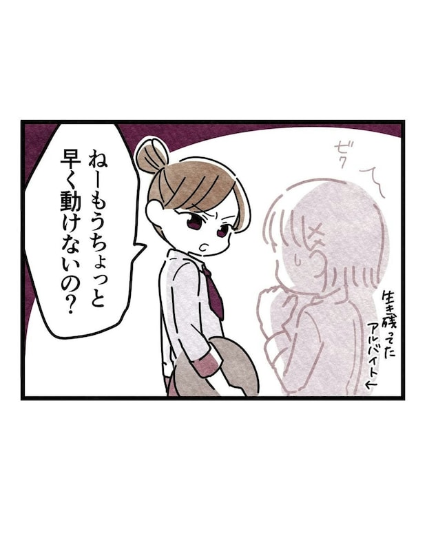 ともみさんは加藤さん同様、仕事はテキパキこなし即戦力となりました。しかし安心も束の間、えみさんは親子で大きな声で悪口を言っているのを聞いてしまいます。そしてえみさんのことも「男に媚びている」と陰口をたたかれていたのでした。