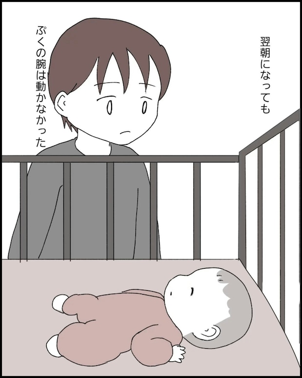 右腕が動かない娘のようすを一晩みても変化はないまま。この状態を病院に報告すると、医師がある提案をしました。それを聞いて、なっぽさんは不安になってしまいます。