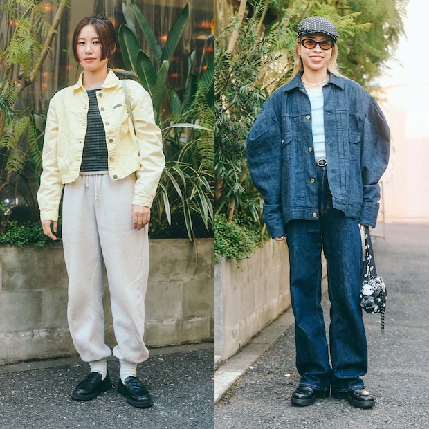 春らしいペールイエローのデニムジャケットがお似合いのヒトミさん。ボトムはラフなスウェット、足元は黒のローファーを合わせて旬なミックスコーデに。ボリュームの出やすいボトムに短丈ジャケットを合わせることで、すっきり見えを叶えてくれるバランスのいいスタイリングが完成。