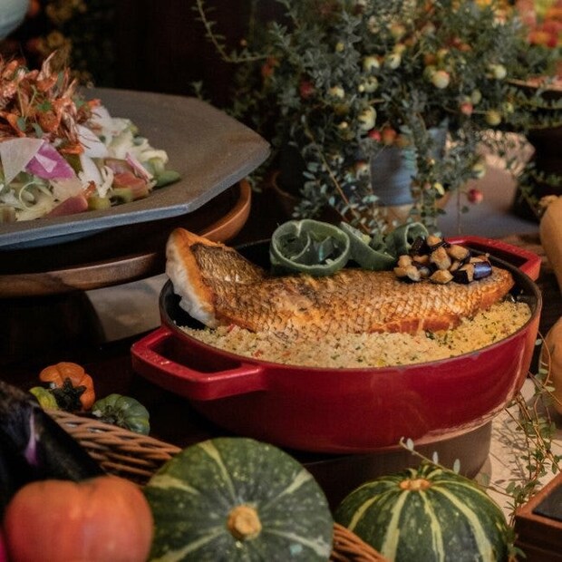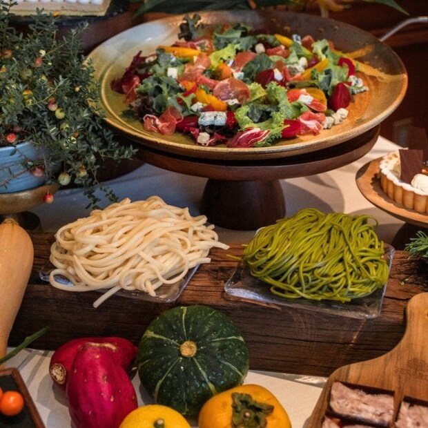 四国の恵みと秋の訪れを感じる多彩な料理が揃う「ヴェンタリオ」のビュッフェ。特に注目してほしいメニューは、テーブルへできたてをお届けする2種類のうどん。