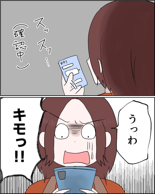 最近しょっちゅうスマホをポチポチやっていたのはこの女性とやり取りしていたのね。そう思いながら『あかり』さんと謙介のメッセージ履歴を確認してみた私は、自分の夫ながら、あかりさんとの会話の気持ち悪さに思わず声をあげてしまいました。