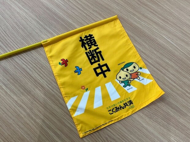 「7才の交通安全プロジェクト」の活動における「地域社会の見守りの目」としては、2020年6月から全国の小学校や児童館に横断旗を届ける活動を続けています。これは当会の自動車共済「マイカー共済」のお見積もり1件につき、横断旗1本を寄贈する取り組みで、これまでに194万本以上を届けてきました。