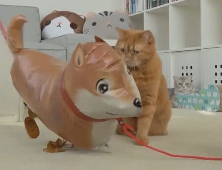 風船のワンちゃんがくっついてくる!