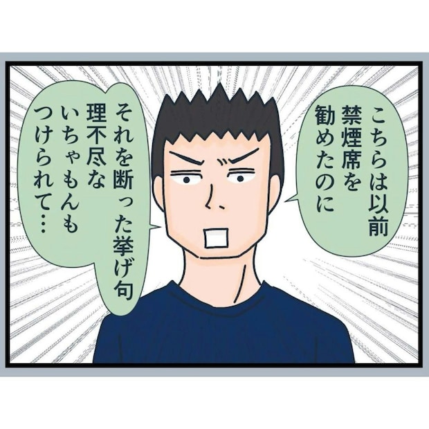 タバコを吸わない問句さんには、バイトさんを通して禁煙席を勧めました。それにもかかわらず、席の移動を断るだけでなく、バイトさんにいちゃもんをつけたことについても言及します。