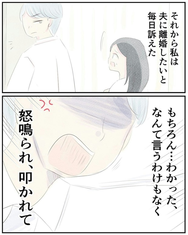自分がDV被害者だと気づいたゆうさんは、離婚に向けて動き出します。しかし、妊娠を機に仕事を辞めてしまったため、貯蓄はありません。誰にも頼ることができず、ただひたすらに「離婚したい」と訴え続ける日々…。
