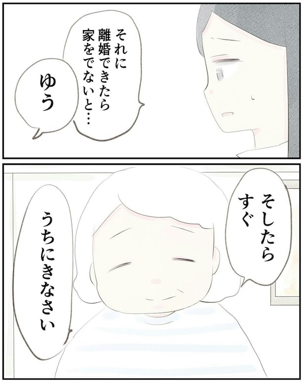 離婚したくても行く当てがなく、不安だったゆうさんを母はそっと包み込んでくれました。いざというときの避難場所があるというのは、心の支えになりますね。