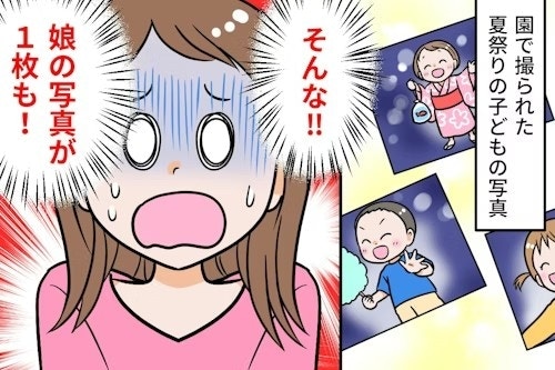 幼稚園や保育園の子どもの行事、できるなら写真に残して思い出として取っておきたいもの。しかし、投稿者さんは子どもの通う園で販売用の写真を見ていたところ、娘の写真が1枚もなく、びっくりして泣いてしまうほどショックを受けてしまいました。