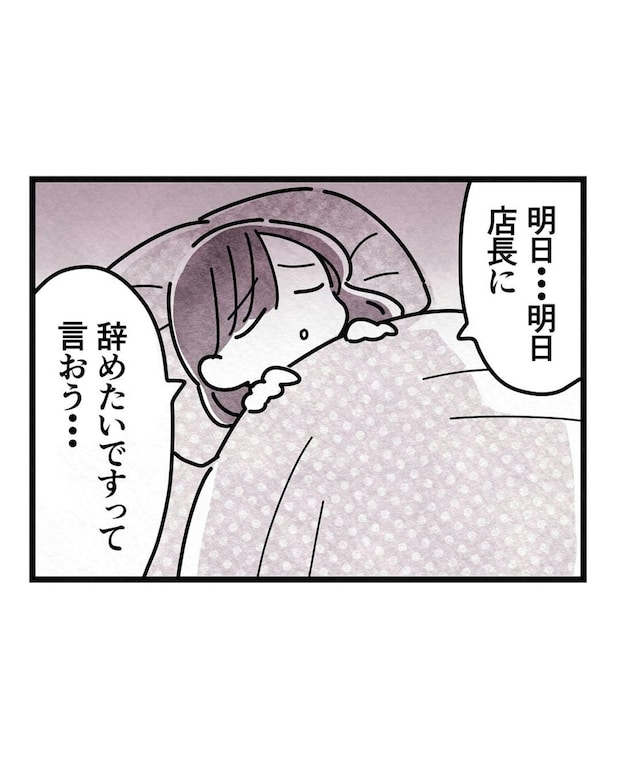 「辞める」ということに希望をたくして眠りについたえみさん。加藤親子による嫌がらせの影響は、スタッフの私生活に及んでいるのです。そのこと店長も重く受け止め、早く鉄槌を下してほしいです。