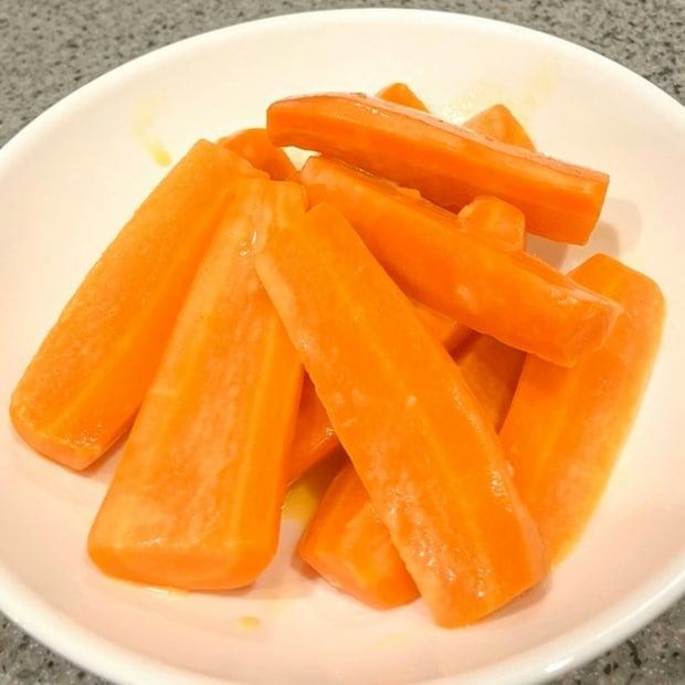 にんじん1本を半分に切って四つ割りし、アイラップで600W4分加熱後、バター・砂糖各大1、塩少々で和えると美味しく仕上がります