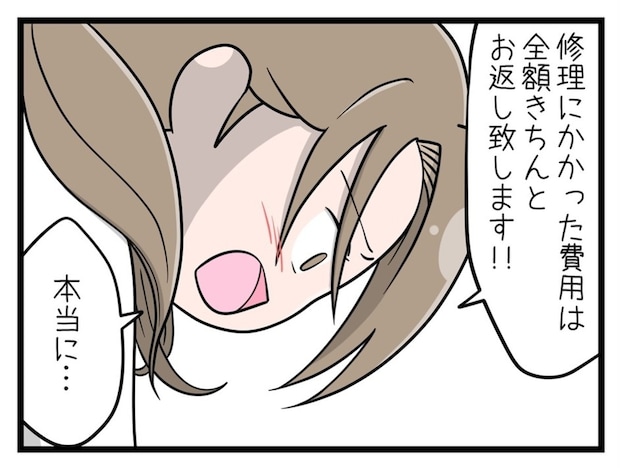 母と謝罪に訪れ、修理代を弁償したことで和解することができました。本当によかったですね。あとは、この卑劣な男性を撃退するだけです。