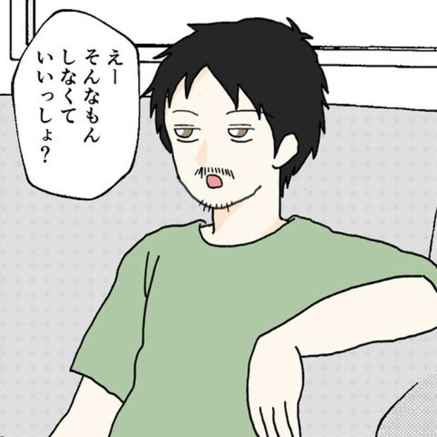 引っ越しのあいさつをするかどうか悩んでいるS葉さんをよそに、この男性はまったく気にする様子がありません。S葉さんも特に反論はせず受け入れているようですが、その表情にはどこか呆れたような気配も感じられます。