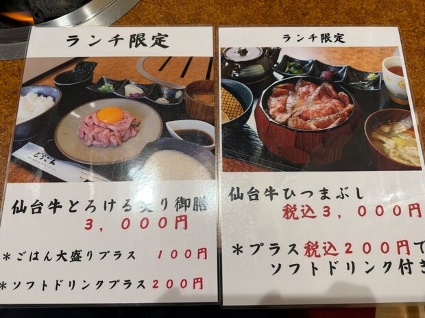 2026年4月6日 【お肉大好きアナウンサー】チーズとタンは合うのか…?最高品質の仙台牛を楽しめる焼肉店│鳥取市 na-na メニュー 仙台牛 ランチ限定メニュー ランチ限定メニューも気になります!! 注文したメニュー ねぎタン(左)1人前 1639円・チーズタン(右)1人前 1639円 塩タン 1人前 1529円 上ハラミ 1人前 1430円 上ミノ 1人前 1100円 仙台牛 ランプ 1人前 1540円 ホタテ貝 1枚 330円 写真は2枚です 次ページ > お肉ソムリエ感想 < 1 2 3 >