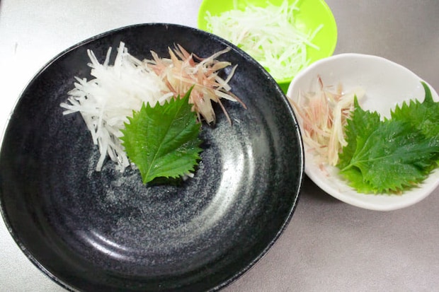 お好きなツマ…適量 ※今回は大根70g、みょうが1個、青じそ4枚使用