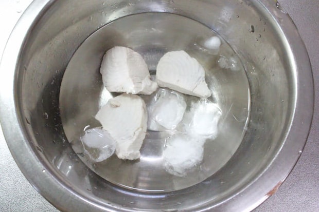 2. すぐに氷水に取り、粗熱をしっかりと取ります。