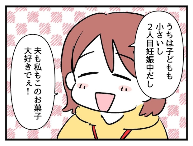 自分や家族の好みを主張し、余分にお菓子をもらおうとするたまみ。たしかに「皆さんでどうぞ」とメモがありましたが、それは職場の皆さんという意味で家族は含まれていませんよね。たまみは自分に都合のいいように解釈しているようです…。