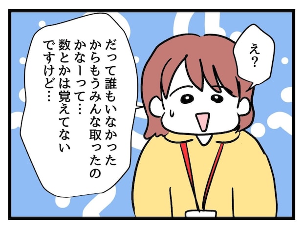 箱にあった分全部もらったというたまみに驚きを隠せない同僚。勝手にもらうのはさすがにマナー違反ですよね。