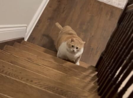 飼い主さんに抱っこしてもらい2階に上がって