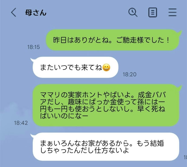 「早く死ね」「成金ババア」夫の義母ディスりLINE、送り先がまさかの相手で修羅場に!