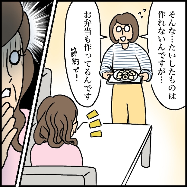 目の前で夫に褒められた私は嬉しさと恥ずかしさで「そんな、たいしたものは作れないんですが」と謙遜しつつ、節約のためにお弁当も作っていることを義母に伝えました。ちょっと自慢したい気持ちもあったのは正直なところ。義母は私の発言を聞いて驚いたように黙ってしまいました。