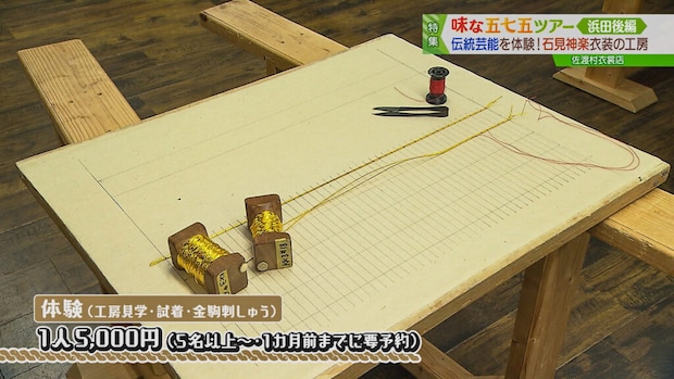 体験(工房見学・試着・金駒刺しゅう)1人5000円 ※5名以上~・1か月前までに要予約