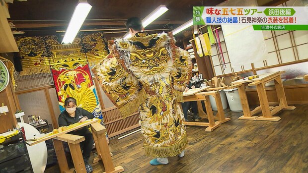 島根県西部の伝統芸能・石見神楽。そのきらびやかな衣装は、職人が一針一針丁寧に縫い上げた芸術品でした!