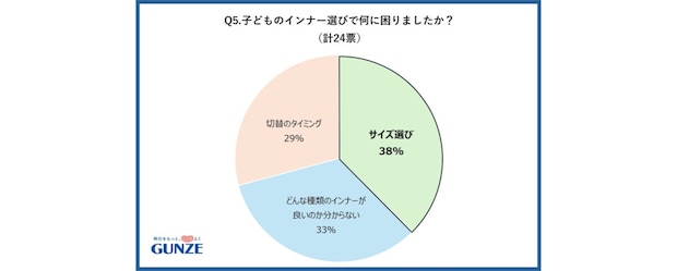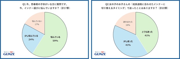 その結果、「今」、思春期の子どもを育てている人のうち、インナー選びに「悩んでいる」と答えた人は82%、また成長に応じた切り替えタイミングに「迷ったことがある」も8割以上にのぼり、選び方の難しさが明らかになりました。