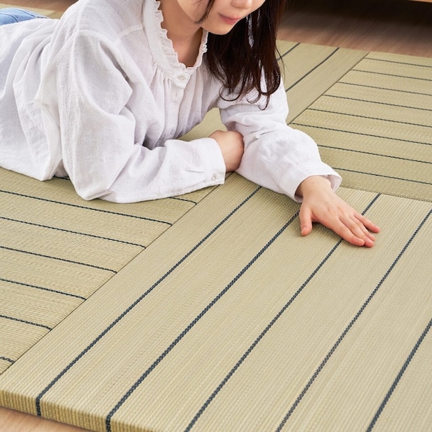ライフスタイルの変化に合わせ、洋室にも馴染むストライプ柄を採用し、ラグを替えるような気軽さで畳のある暮らしを楽しめる商品です。