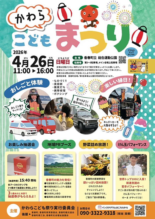 The post 【香春】4月26日(日)、香春町立総合運動公園で「かわらこどもまつり」が開催されます! first appeared on 筑豊情報マガジンWING.