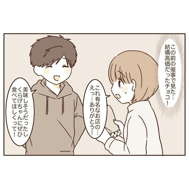 くらげさんはバレンタインデーのチョコレートをみなとくんへ渡したあと、みなとくんからもプレゼントを受け取りました。