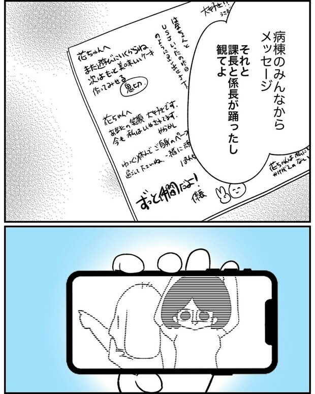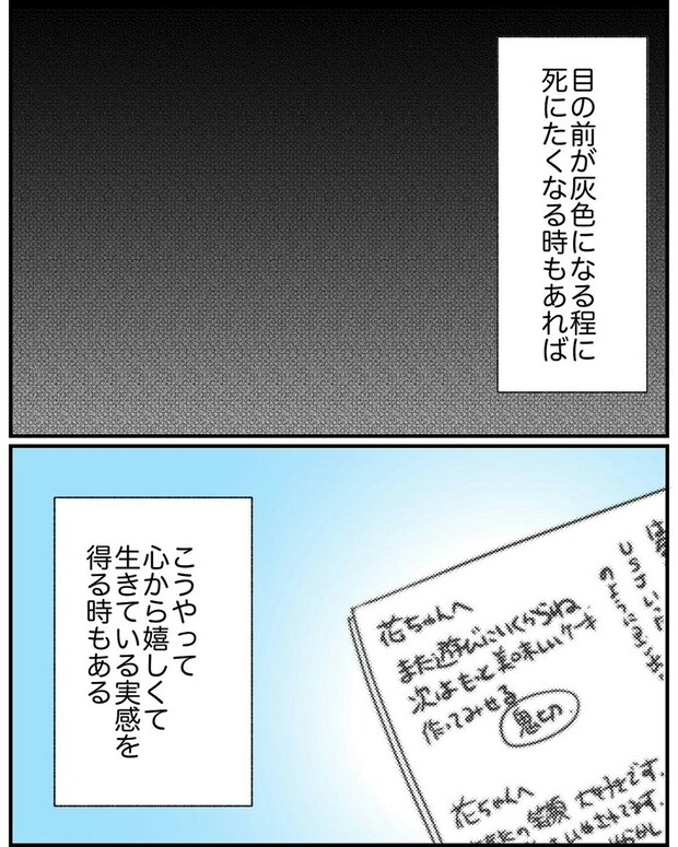 ツラい日々を送っている花さん。それでも、両親に心配をかけまいと、気丈に振る舞います。そして、支えてくれる人の存在が、生きる希望を与えてくれることも…。