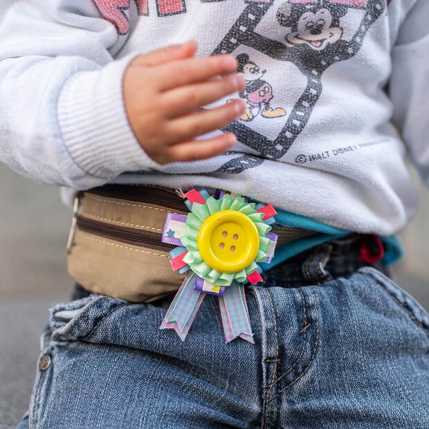 旬のウエストポーチをキャッチ! ママとお揃いのロゼッタにお気に入りのミニカーが入れて、キッズもテンションアップ♪