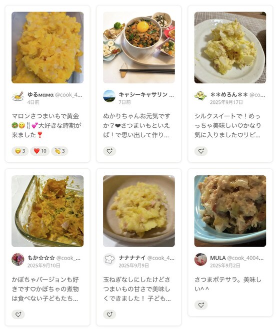 つくれぽ(みんなのつくりましたフォトレポートのこと)でも、「少し甘さがあって、じゃがいものポテトサラダにはない魅力がありますね」「さつまいもが苦手な子どもに『もう一口ほしい』と言われて感激!」といった声がたくさん届いています。