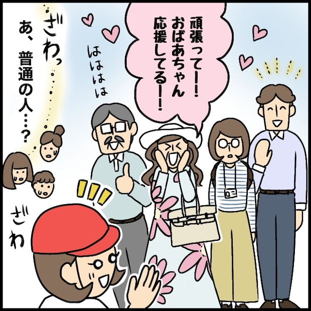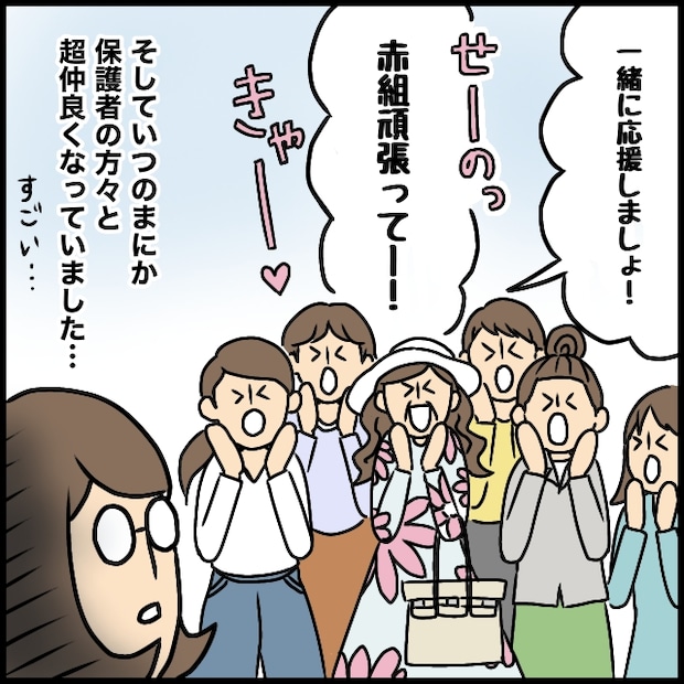 すると、「一緒に応援しましょ!」と周りの保護者の方たちに声をかける義母。そして、「せーのっ赤組頑張ってー!!」と言うと、一緒になって声援を送ってくれました。いつの間にか周りの保護者の方々と超仲良くなっている義母を見て「すごい・・」と思わず呟いてしまいました。