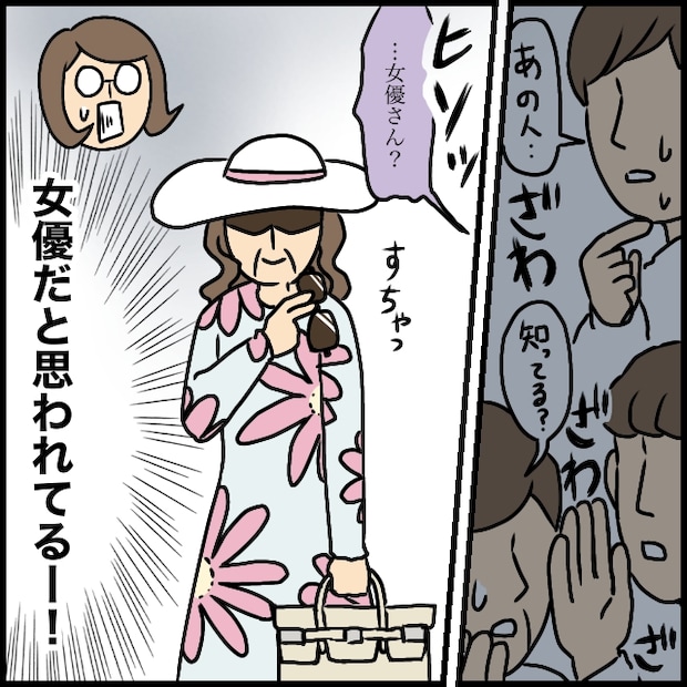 周りは「あの人・・」「知ってる?」と一斉に話し始め、義母の話題で持ち切りに!しまいには「・・もしかして女優さん?」という声まで!そう、高級品に包まれた義母の出で立ちが女優さんに見えたようなのです。
