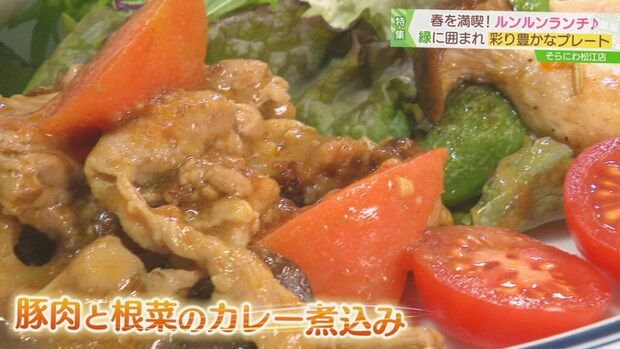地元の旬の野菜を多く使った月替わりのプレートランチ!色とりどりで春を感じます。