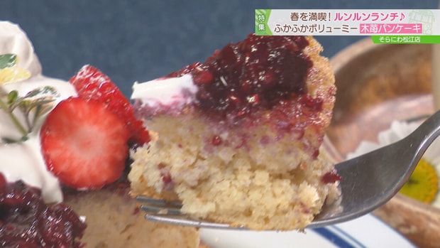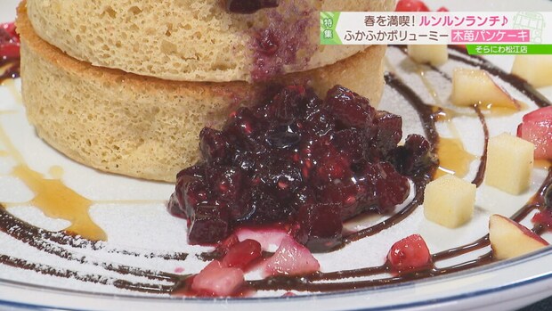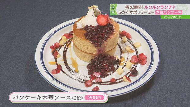 フカフカのパンケーキは初めての食感!木苺ソースがフレッシュな苺のさわやかな香りがしてちょうどいいのです(^^♪