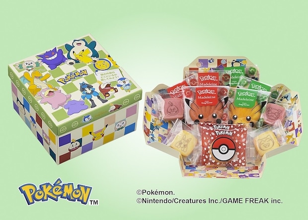 特長:ポケモンたちをデザインしたBOXに、マドレーヌとプリントクッキー、モンスターボールをイメージしたフィナンシェを詰め合せました。