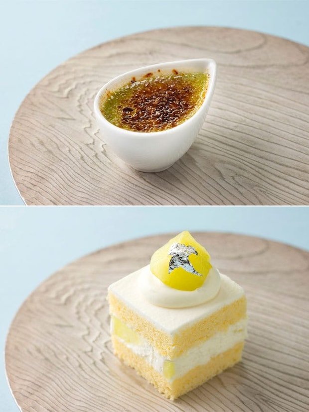 抹茶仕立てのブリュレやメロンのショートケーキも