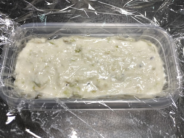 6. 空気を抜きながらラップや密閉容器で円柱か四角柱に成形し、一晩冷蔵庫で寝かせます。