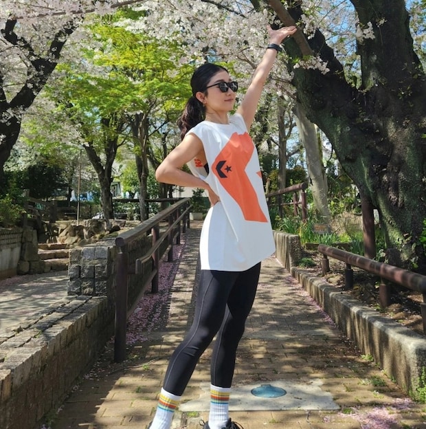 イベントで着用するウエアでyukari流ランコーデを披露。※身長157cm