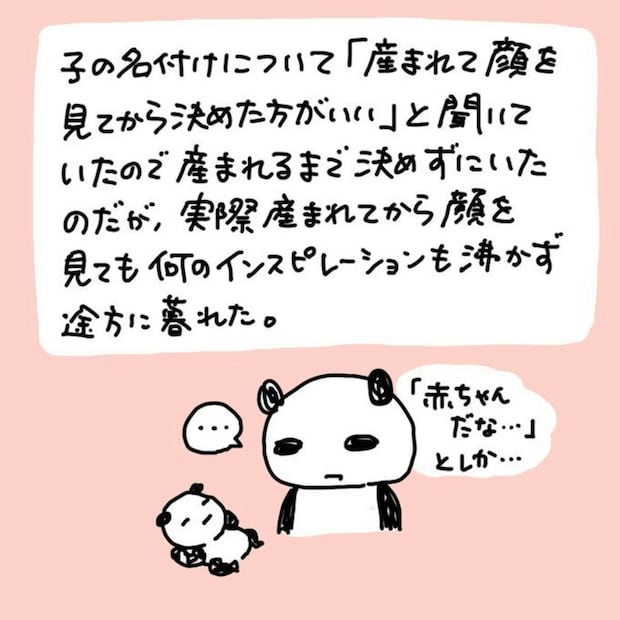 「顔を見てから決めた方がいい」と聞いていたこともあり、インスピレーションが沸いてくると信じていたのでしょう。しかし、実際にわが子の顔を見ても、赤ちゃんだなとしか思わなかったそう。たしかに、生まれたばかりの赤ちゃんは、みんな似ていると言えば似ているような感じもしますよね。