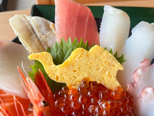 まずご紹介するのは、14~15種類もの海鮮が盛り付けられた豪華な「砂丘海鮮丼」。