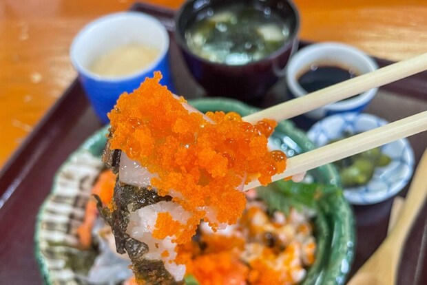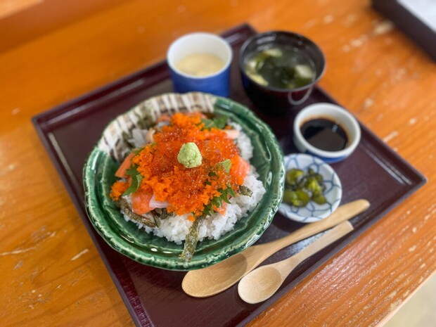 その上に、いくらとししゃも玉子がたっぷりとかかり、オレンジ色が鮮やかな見た目に思わずうっとり。