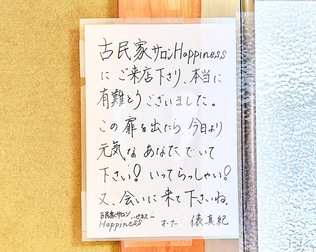 だからこそ、「ここに来るお客様みんなが幸せになりますように」という願いを込めて、「Happiness」という名前を選んだのだそうです。