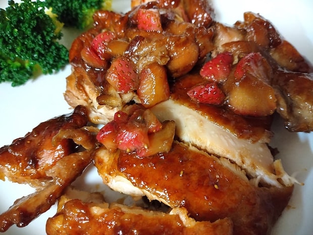 鶏肉にいちごのソースを絡めて、口に運んでみると…。